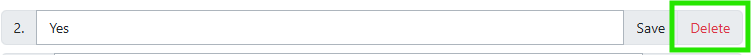 To delete an answer to a question, click Delete next to the answer.